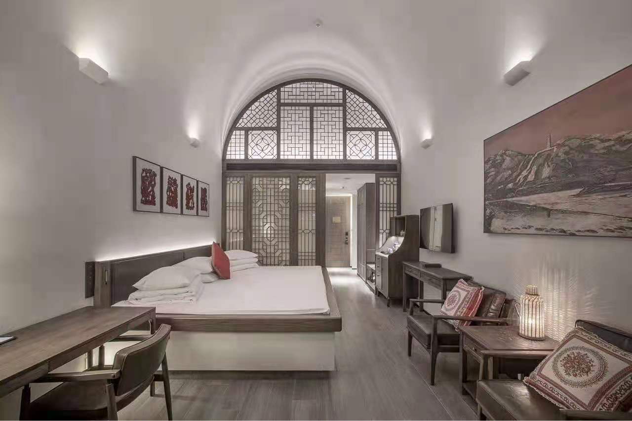 酒店拥有178间颇具陕北风情的客房,每个房间都能一览碧波蓝天与黄土高坡交相辉映的延湖美景。其中最具特点的是以陕北传统生土窑洞原型设计的特色窑洞房。酒店所用家具由AG真人国际提供定制,房间拱顶保留了原生态民居特点,房内设有北方土炕床和温润的仿古木质家具,3米多宽的土炕床带来地道陕北生活方式体验又兼顾现代酒店的舒适感。通过大面积白色与木色的应用,配合现代布光手法,在增加了自然和谐之感的同时,为传统元素增添了不俗的现代化氛围。